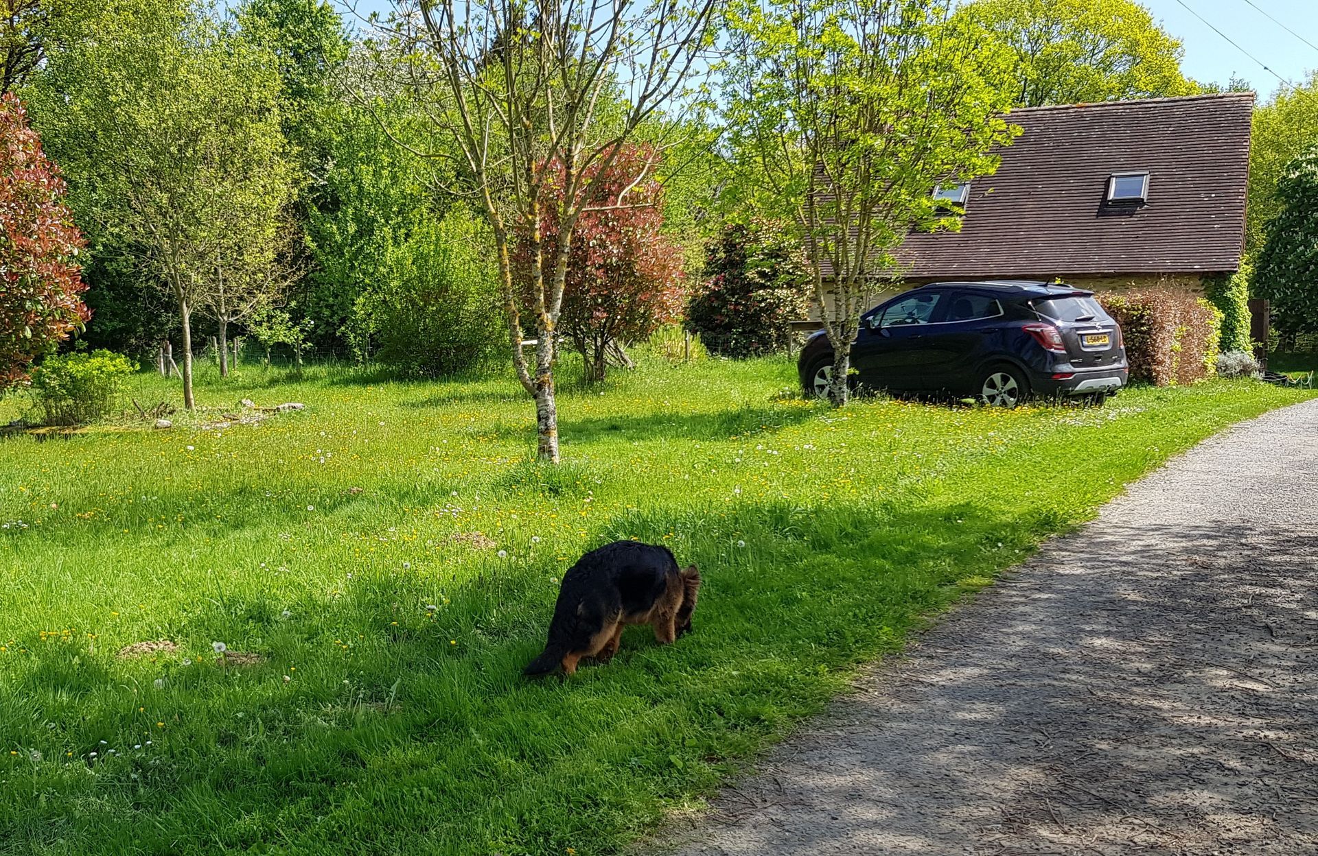 De ruime omheinde tuin bied zowel zon en schaduw plekjes.