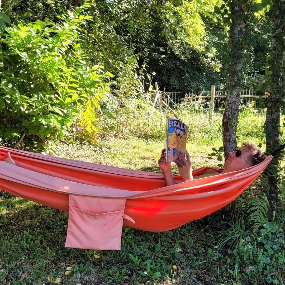 Voorzien van een tuinset, 2 ligstoelen, picknicktafel en voor de liefhebbers een hangmat tussen de bomen. Om lekker te relaxen.